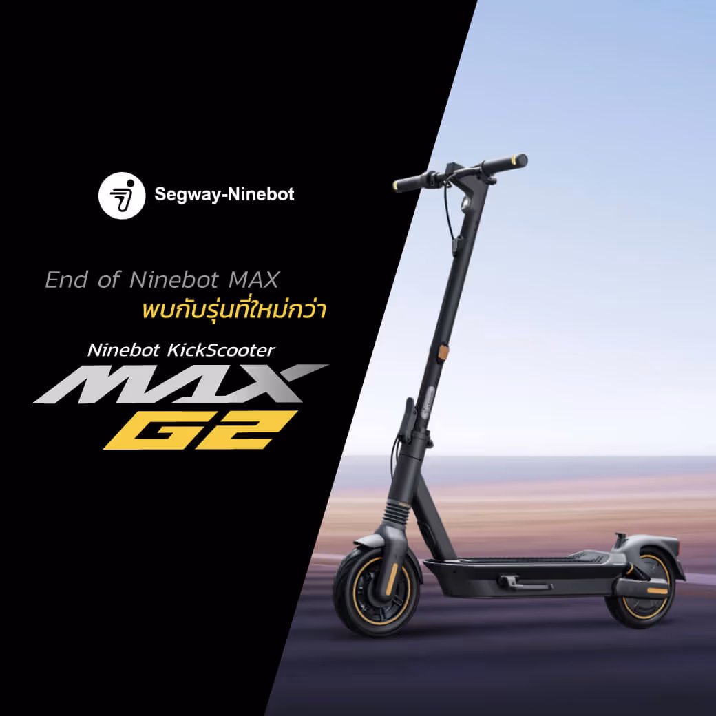 Ninebot MAX เข้าสู่ช่วง EOL (End of life) เป็นที่เรียบร้อยแล้ว โดยปัจจุบัน Segway-Ninebot ได้มีการพัฒนารุ่นที่ใหม่ขึ้นมาเพื่อให้คุณได้สัมผัสประสบการณ์ที่เต็ม MAX กว่าเดิมออกมาเป็นรุ่น Ninebot MAX G2