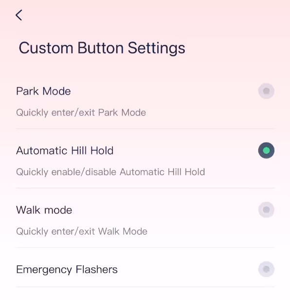 ปุ่มบน ทำหน้าที่เป็นปุ่มเปลี่ยนโหมด รุ่นนี้เปลี่ยนโหมดผ่านการกดแค่ครั้งเดียว และอยู่ในตำแหน่งที่กดง่ายมากขึ้น ไม่ตรงเอื้อมไปกดปุ่มตรงกลางหน้าจอเหมือนรุ่นอื่น ๆ และยังใช้เป็นปุ่มสำหรับการ Activate Cruise Control โหมดล็อกความเร็วขณะขับขี่ (ในรุ่นนี้ไม่มีปรับในแอปแล้วนะครับ เผื่อใครสงสัยว่าหายไปไหน)