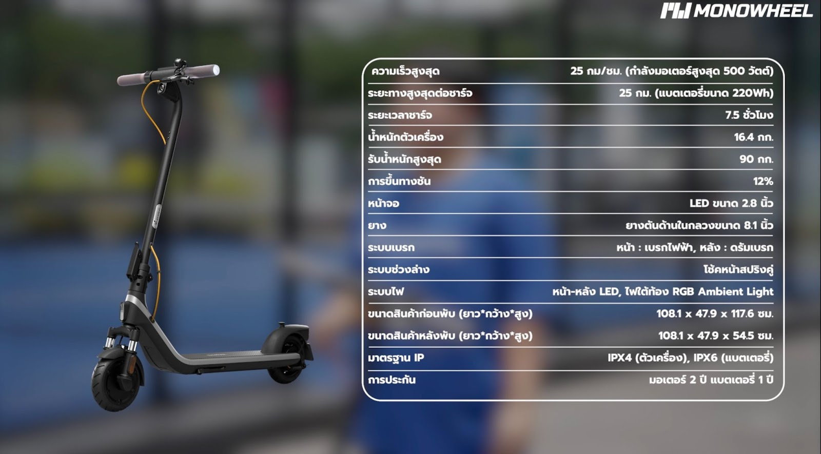 - มอเตอร์ทรงพลังและความเร็ว: มาพร้อมมอเตอร์กำลังสูงสุด 500 วัตต์ สามารถทำความเร็วสูงสุดได้ 25 กม./ชม. และวิ่งได้ไกลถึง 25 กม. ต่อการชาร์จหนึ่งครั้ง