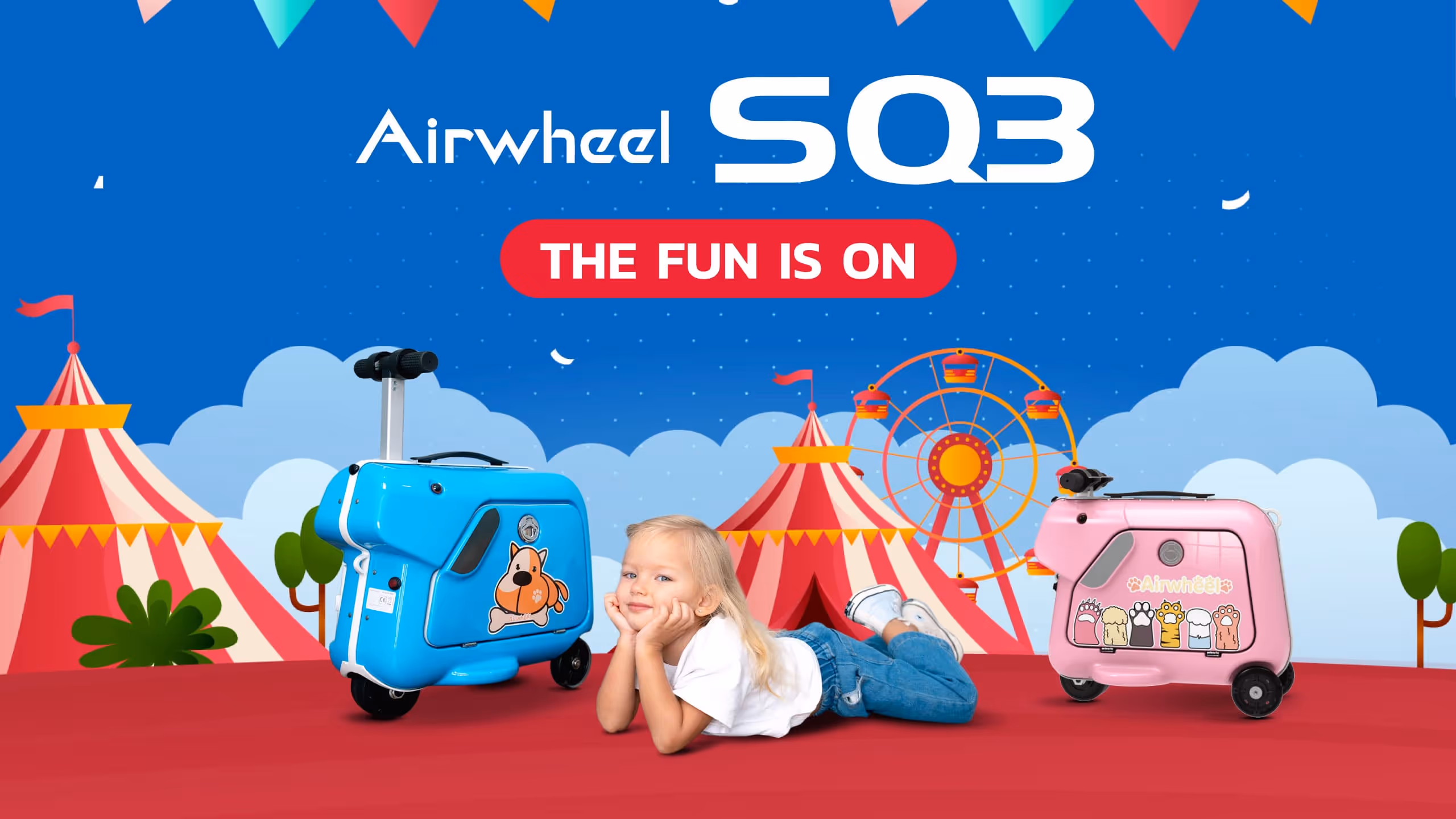 Airwheel SQ3 กระเป๋าเดินทางไฟฟ้ารุ่นใหม่ที่พัฒนามาจากรุ่น SE3S ที่เป็นรุ่นฮิต ถูกออกแบบมาเพื่อสำหรับเด็กโดยเฉพาะ เพื่อให้เด็ก ๆ ทุกคนได้รับประสบการณ์ที่ทั้งสนุกและปลอดภัย ในเวลาเดียวกัน โดย Airwheel SQ3 มีทั้งหมด 2 สีได้แก่ สีชมพูและสีฟ้า