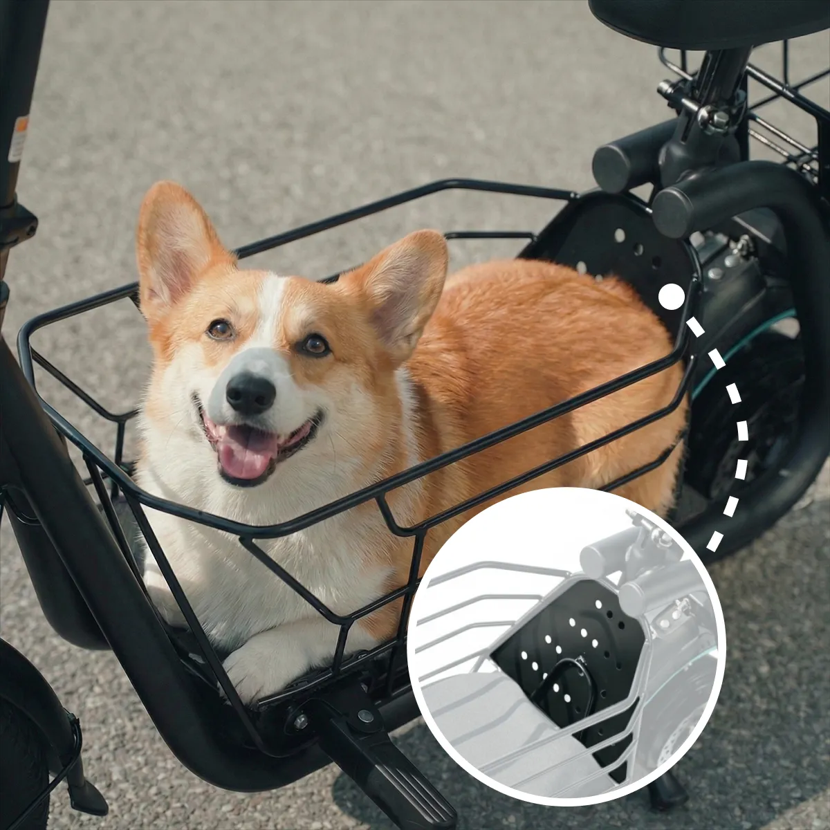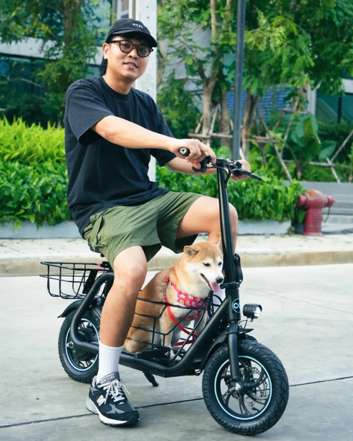 Gyroor C1S สกู๊ตเตอร์ไฟฟ้าที่มาพร้อมเบาะนั่งและตะกร้าหน้า-หลัง ช่วยให้การเดินทางสะดวกสบายยิ่งขึ้น เหมาะสำหรับการขนของและพาน้องหมาไปเที่ยว