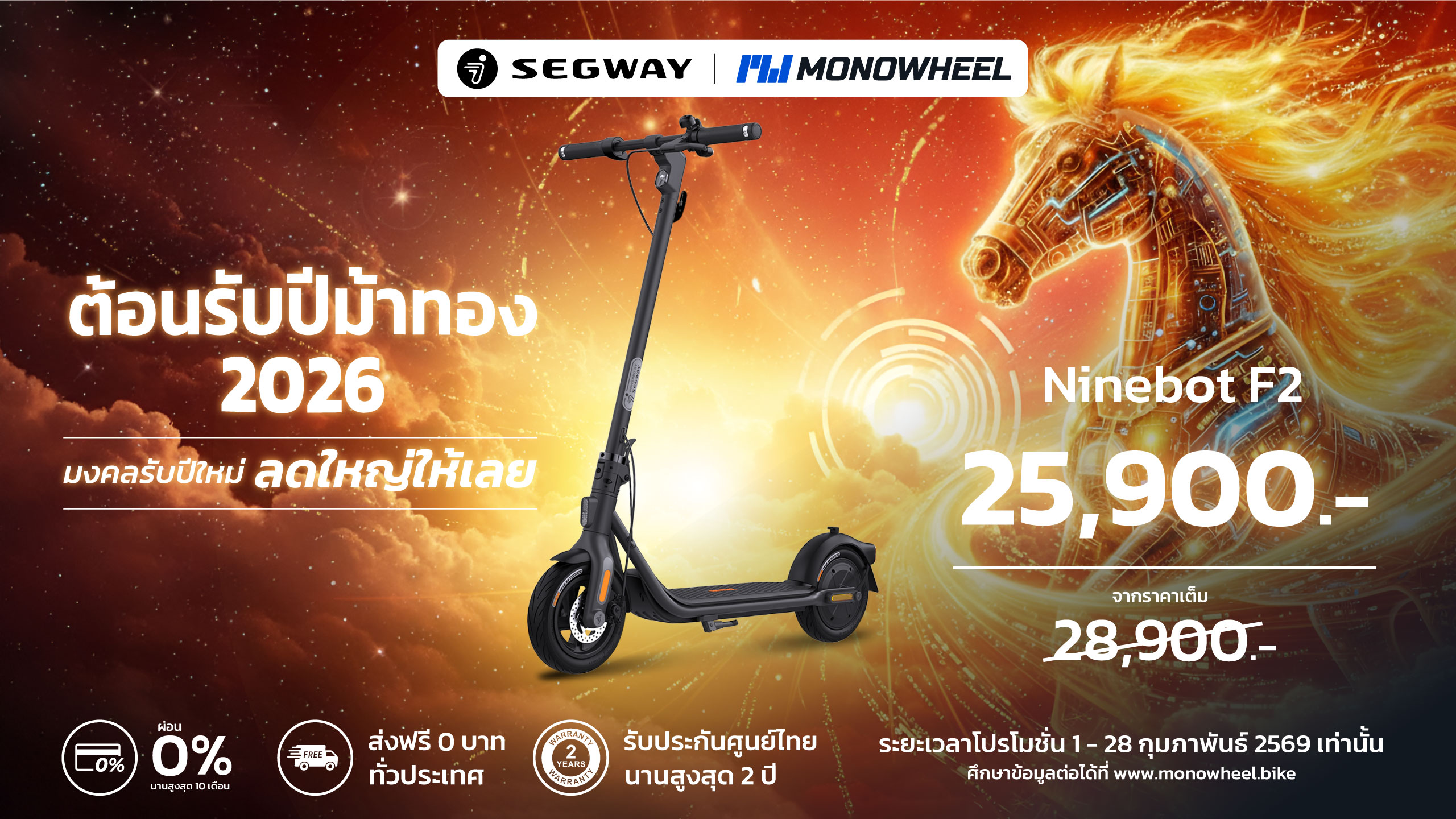 Ninebot E2 Series สกู๊ตเตอร์ไฟฟ้ารุ่นใหม่ที่ล่าสุดเปิดให้จองได้แล้ววันนี้ (เฉพาะรุ่น E2 Plus) พิเศษสำหรับลูกค้าที่สั่งจองภายในช่วงเปิดตัว รับเลยส่วนลดเงินสดมูลค่า 2,000.- เหลือเพียง 16,900.- เท่านั้น (จากราคาปกติ 18,900.-)